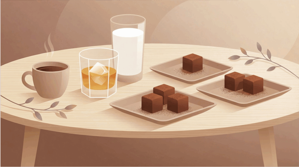 適温に戻した生チョコレートは、飲み物との組み合わせ(マリアージュ)でさらに輝きます。